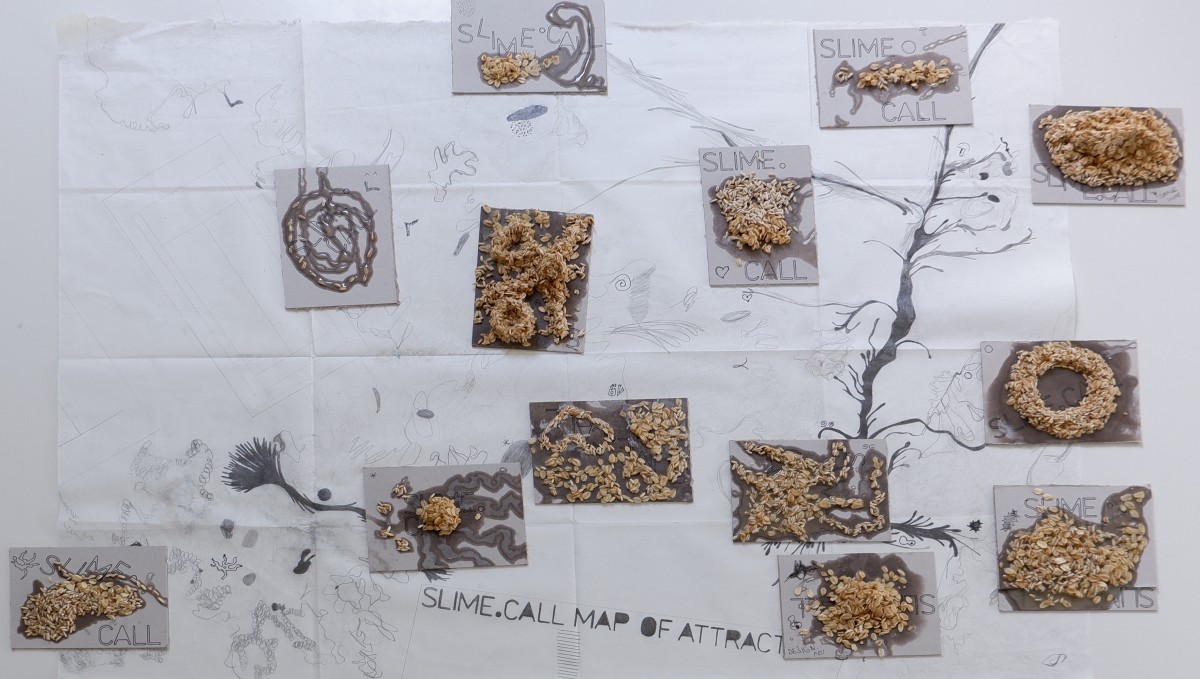 Algorithms + Slimes is an ongoing artistic-academic research project that takes slime molds as teachers that we as students can learn from about worldly processes, including algorithmic practices. Appreciating the shapeshifting qualities of both slime molds and algorithms in the planthroposcene, we do not draw boundaries to try and capture what slime molds “are” or how they can be “used” for some purposes, but rather attend to what these ancient beings can and want to share with us. Through this practice of careful attention and relationship building to these more-than-human beings, we invite slime molds into a series of actions that will inform what we can come to know of them, if they wish to be known. From here questions about algorithmic processes and knowing algorithms in the planthroposcene are unfolded.