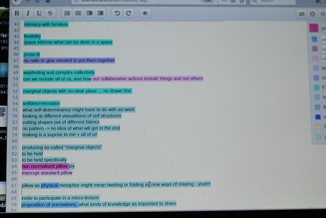 Including creating self-determined objects, creating varying support structures and offering exercises like intimate micro lectures were the gestures I brought into the worksession